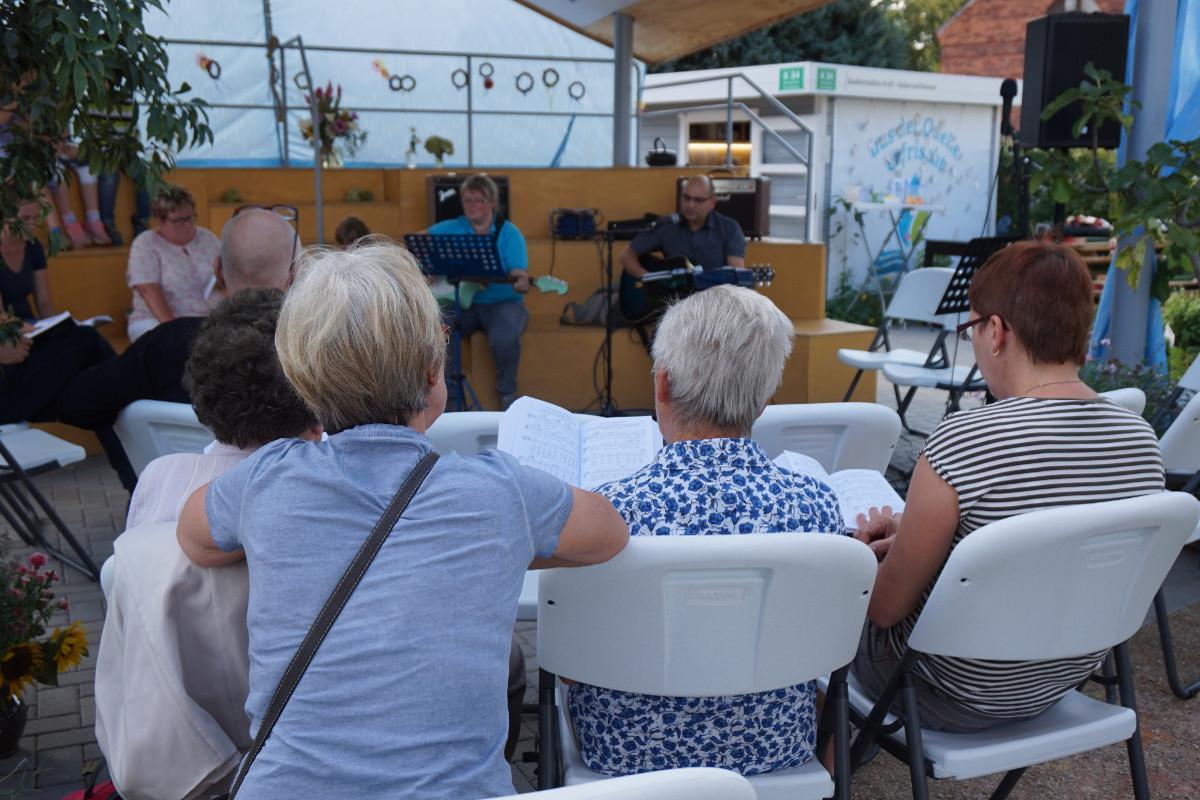 Die Kita St. Johannes aus Burg spielte ein Theaterstück über die Schildkröte Fridolin, die im Garten nach bunten Farben sucht. Dazu gab es Lobpreis und Musik mit der Charismatischen Erneuerung aus Burg.