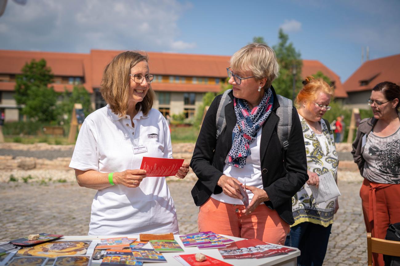 Sich ganz der vielsprechenden Atmosphäre des Klostergeländes anvertrauen – im Lebendigen Labyrinth lockten Gitarren-Sommerklänge zum Lauschen und Mitsummen. In der Gertrudkapelle und in der Klosterkirche fanden die Veranstaltungsgäste einen besonders stillen Raum zum Verweilen in Gottes behutsamer Gegenwart. Und für alle erstmalig mutigen Teilnehmenden am Frauenfest waren Klosterführungen eine wunderbare Gelegenheit, sich mit diesem einzigartigen Ort bekannt zu machen. Die Ausstellung „Philosophinnen. Von der Antike bis zur Gegenwart.“ des Dornrosa e.V. Halle, im Klostergelände schlendernd erschlossen, informierte über besondere Denkerinnen der Kulturgeschichte, die allerdings bis 1993 in keinem Philosophie-Lexikon als solche geführt wurden. Ein Bibliodrama lud zu intensiven Erfahrungen mit den Verheißungen und Zumutungen des Wort Gottes ein.
