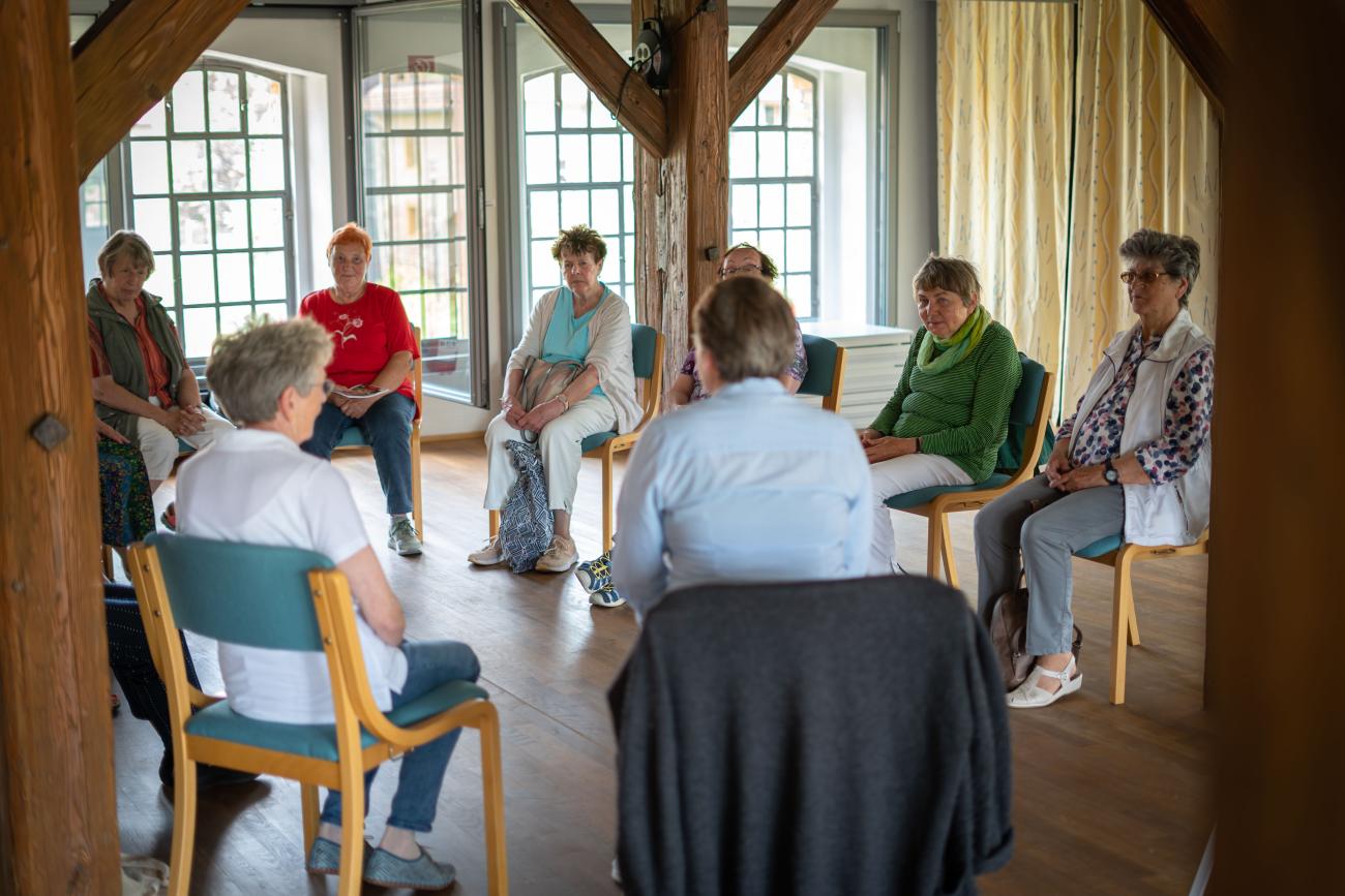Mit einem Morgenlob - unter Gottes Segen gestellt - bot sich den Gästen des Frauenfests dann eine Vielzahl an Möglichkeiten der Begegnungen, Gespräche und Erprobungen. Dr. Regina Lorek eröffnete mit Einblicken in die Bandbreite und die (Un-)Tiefen vielfältigen GeMüts. Dem Lebensmut widmete sie nicht nur ein Erinnern an den taggenauen 70. Jahrestag des Volksaufstands in der DDR, sie ermutigte auch dazu, unserer christlichen Auferstehungshoffnung zu trauen und den Anfragen von Leid und Tod entgegen zu treten. Impuls von Dr. Regina Lorek zum Nachlesen